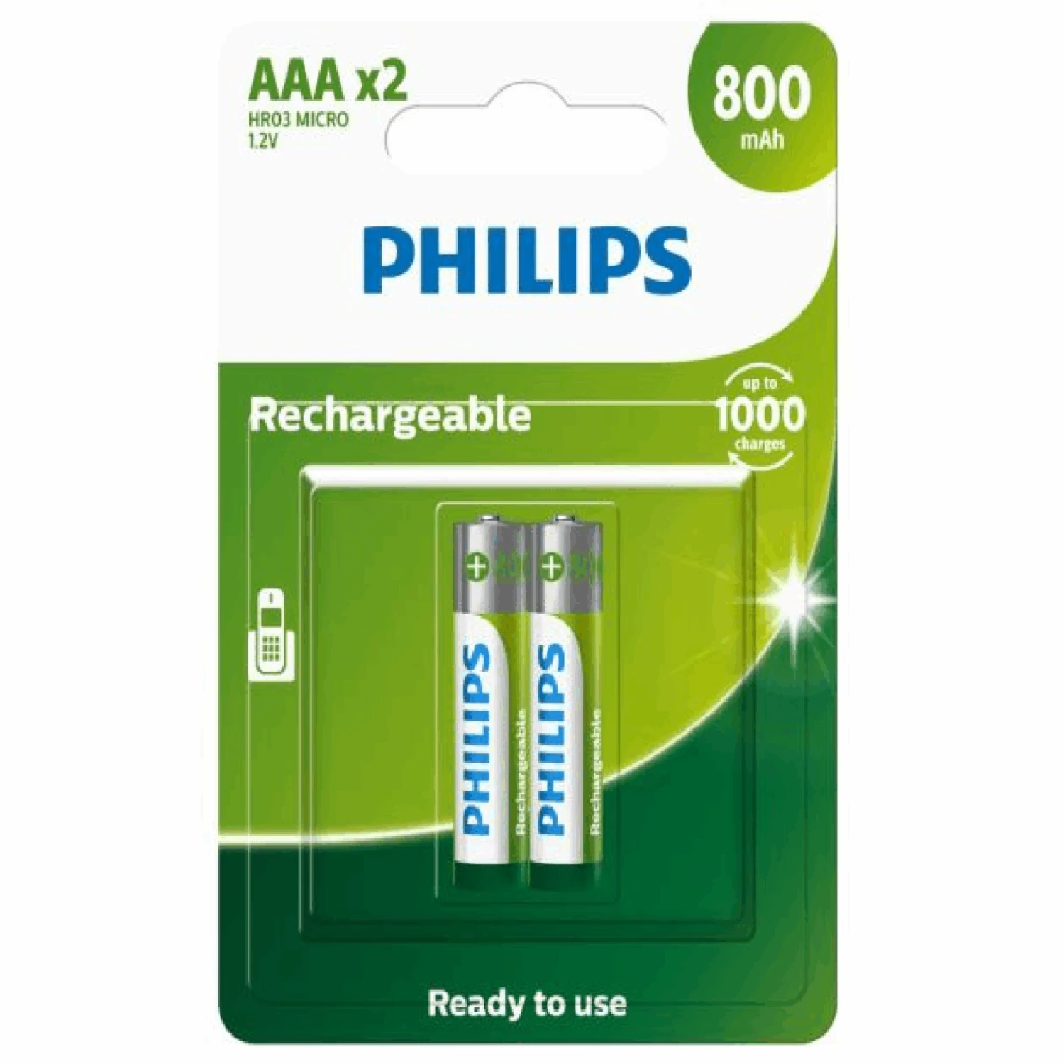 Philips 2AAA 800mAh Rechargeable Battery 2PC/PACK